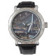 Uhr, Vintage Männeruhr mit schwarzem Lederarmband