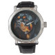 Uhr, Vintage Männeruhr mit schwarzem Lederarmband