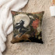 Vintage Hexenfliege über großen Mond mit Rose im Hintergrund.