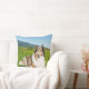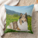 Dieses Kissen zeigt meinen zeichn einer herrlichen Rough Collie, die an einer farbenprächtigen Bergkulisse und einer Buttercup Wiese im Vordergrund sitzt. Diese phantastischen Hunde wurden in Schottland für Herden verwendet und sind seitdem zu einem beliebten Haustier geworden. Dieses Kissen würde in jedem Zimmer schön aussehen und würde ein großartiges Geschenk machen.