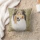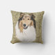 Dieses Kopfkissen zeigt mein Portrait eines wunderschönen langen Haars, Rough Collie, gegen einen braunen Blumendruck.