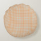 Round pillow with a small checkered pattern in orange and white. It is shown from the front and back, conveying a cozy and warm feel.
