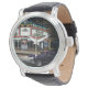 Uhr, Vintage Männeruhr mit schwarzem Lederarmband
