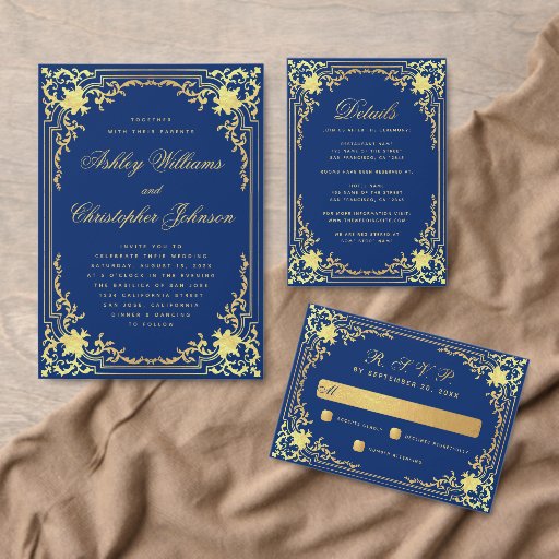 Royal Blue Faux Gold Elegant Vintage Wedding SuiteDesignt von Artifex Designs