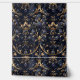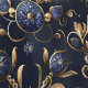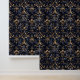 Dieses luxuriöse Princesscore-Muster besticht durch seine elegante, goldene Filigree, die mit saphir-farbenen Blumen und Juwelen verziert ist. Set vor tiefblauem Hintergrund. Das verzierte Design besticht durch seine besondere Eleganz und erinnert an die Pracht der aristokratischen Ballsäle und königlichen Wandteppiche. Ideal für opulente Mode, Tapeten oder hochwertige Schreibwaren.