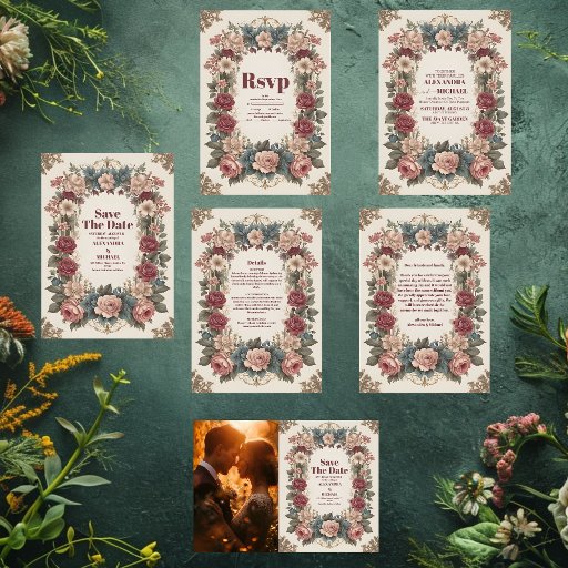 viktorianische hochzeitblumenverzierte vintage ornamentekunst deko antikeelegantklassisch19 jahrhundertromantischaufwändig königlich opulentzeitlos charmant