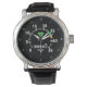 Uhr, Vintage Männeruhr mit schwarzem Lederarmband