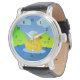 Uhr, Vintage Männeruhr mit schwarzem Lederarmband