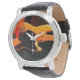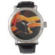 Uhr, Vintage Männeruhr mit schwarzem Lederarmband