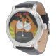 Uhr, Vintage Männeruhr mit schwarzem Lederarmband
