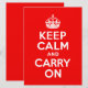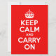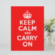 Behalten Sie Ruhe und Carry On Design auf einem hellen Regenbogenrot. Das ist eine Reproduktion eines altmodischen Posters.