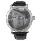 Uhr, Vintage Männeruhr mit schwarzem Lederarmband