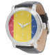 Diese Uhr zeigt die Flaggenfarben Rumäniens.