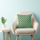 Kopfkissen in Retrodots auf der Basis eines klassischen, modernen Polstermusters aus dem Mittelalter - türkisfarbene Pfauendots, die in hellen Aqua auf schokoladenbraunem Hintergrund umrahmt sind