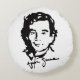 Stilvolles rundes Kissen mit einer fett schwarz-weiß-künstlerischen Porträtmalerei mit einer Unterschrift. Ideal, um eine moderne und personalisierte Touch in das Dekor der Zuhause zu integrieren.