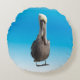 Pelikan stehend gegen einen hellen Himmel. Bird beugt seinen Federn vor.