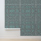 Eine wirbelnde, gemusterte Grafik, in Grautönen, aquamarin, gelb und schwarz, bilden dieses reiche, geschmackvolle Jugendstil-Design.
