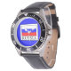 Uhr, Vintage Männeruhr mit schwarzem Lederarmband