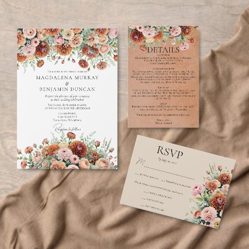 Rust Orange Sage Green Creme Blume Hochzeit im Her Einladung