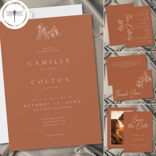 Rust Terracotta Minimalist Leaf Acorn Fall WeddingDesignt von Kathe Santillo