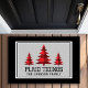 In der Urlaubssaison läuten Sie ein mit drei immergrünen Bäumen geschmücktes, rustikales Tormat mit einem roten und schwarzen Büffel-Karo, einer fröhlichen Urlaubsbotschaft, die lautet: "Karierte Dinge", und einer anpassbaren Monografie. Ändern Sie dieses Design, indem Sie Ihren Familiennamen hinzufügen, um eine warme und unvergessliche Begrüßung zu Ihrer Zuhause in dieser Weihnachtszeit. Ein tolles Geschenk auch für neue Hausbesitzer.