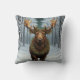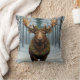 Rustic Christmas moose winter snowy woodland forest throw pillow.