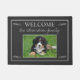 Moderne rustikale dunkelgraue Türmatte mit Fotovorlage, Familienname und Willkommensskript. Schöner hellgrauer Schriftart mit Kalligraphie. Fügen Sie Ihr schönstes Foto hinzu und fügen Sie Ihren Namen hinzu. Sie können den Text leicht ändern.