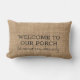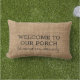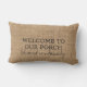 Rustic faux burlap "welcome to our porch" script, family name outdoor Lumbar Pillow.