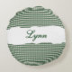 Rustic Green Gingham Personalized Name Rundes Kissen