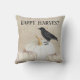 Ein rustikales Herbstkissen mit neutralen weißen Kürbissen, einer schwarzen Krähe und "Happy Harvest" Text auf einem burlings-Stil Hintergrund. Ein gemütlicher Bauernhof-Akzent für Wohnzimmer, Einstiegsbänke oder saisonale Dekoration - ideal für Herbstdekoration von Herbst Ansammlungen bis Erntedank.