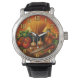 Uhr, Vintage Männeruhr mit schwarzem Lederarmband