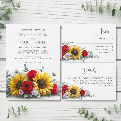 Rustic Sunflower Red Rose Floral Wedding SuiteDesignt von Merry D