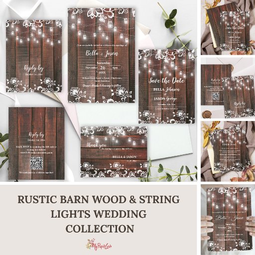 Rustic Wood & White Lace Floral Wedding SuiteDesignt von Mypaperlove Designs
