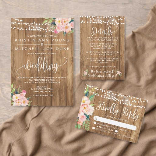 blumenreichblumeholzlandrustikalhochzeiteinladenlichtereleganteinladung
