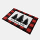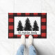 Rustikale schwarze Waldbäume Silhouette Schwarz-Weiß Büffel Karo kariert Türmchen. Diese Matte kann mit dem Namen Ihrer Familie personalisiert werden!