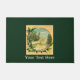 Ein Vintages rustikales Bild; eine kreisförmige Vignette mit Bergen und Schneebäumen in den Ästen, umgeben von einem Blumenmotiv. Fügen Sie Ihren eigenen Text hinzu.
