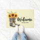Rustikale Cowboystiefel mit Sonnenblumen Willkomme Fußmatte