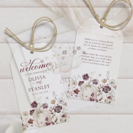 Boho Hochzeit im Herbst Tischnummern mit einem einfachen weißen Hintergrund, rustikalen Herbst Aquarell Wildblumen und charmanten Kürbis.
