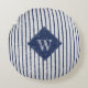 Rustikale graue Linen und Navy Blue Stripes Monogr Rundes Kissen