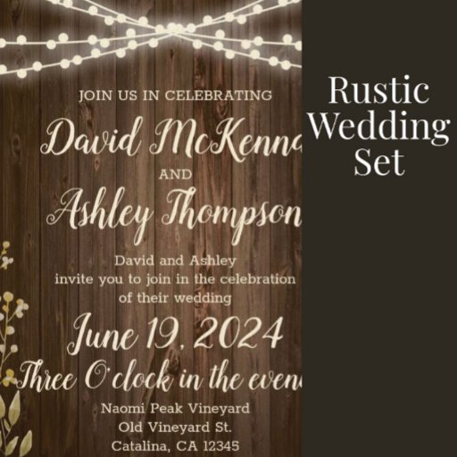 Diese eleganten Einladungen sind perfekt für jede Hochzeit. Schönes dunkles Holz im Hintergrund mit schönen Lichtern hängt und einfache Blumen auf beiden Seiten. Suchen Sie unbedingt nach unseren passenden Artikeln, die hier verkauft werden: https://www.zazzle.com/store/heritagematters/products?cg=196216292281918880