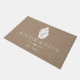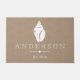 Rustikale Küstenart weiße Seashell-Silhouette in der Mitte. Der Hintergrund hat einen Imitatleinwanddruck und personalisierten einen Familiennametext. Diese Fußmatte ist elegant schön, rustikal, und und würde einen großen Eindruck auf Ihren Hausgästen machen, da sie zu Ihrem Zuhause begrüßt werden!