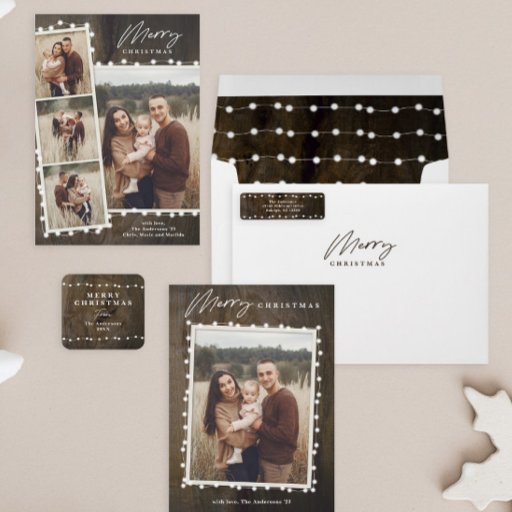 Rustic Christmas Lights Photo Collage Holiday CardDesignt von Stacey Meacham