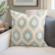 Rustikale Linen Beige und Blue Ikat Print Kissen