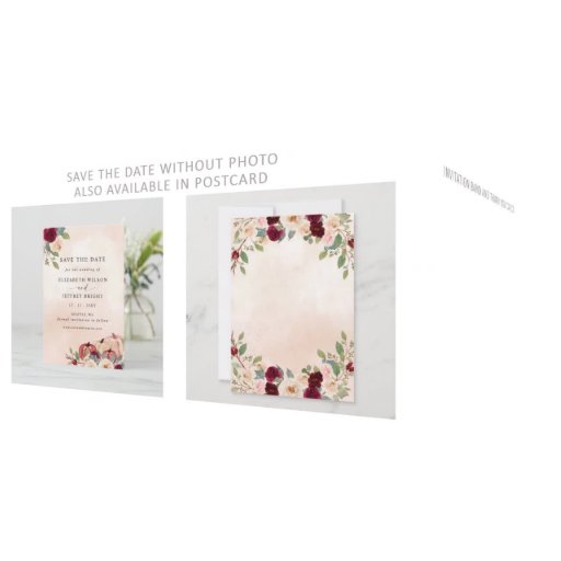 Rustikale, moderne Burgunder Peach Hochzeit im Herbst Umschließungskarte