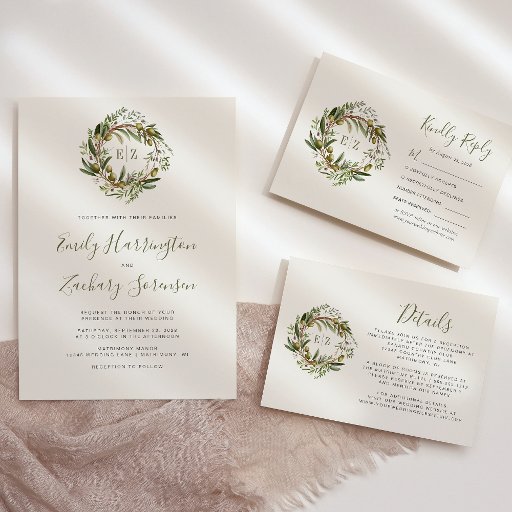 Rustic Olive Wreath Monogram Wedding SuiteDesignt von Akhates Designs