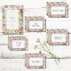 Dieser wunderschöne Blumenrahmen ist mit blauen, gelben, weißen, rosa und lavendelfarbenen Blume und Grünpflanzen gefüllt. Der mittlere Bereich ist von einem Doppelrahmen umgeben. Diese schöne und elegante Karte ist Teil der Rustikalen Pastellfarben April Watercolor Floral Wedding Suite von Karten erstellt von Simply Farmhouse Press.