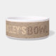Personalisierte Hundeschüssel mit Pfotendruckbuchstaben in Brauntönen mit texturiertem Effekt Hintergrund für ein rustikales Aussehen.