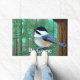Ein malerisches kleines Chickadee inmitten der Evergreens.