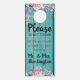 Dieses hübsche rustikale rosa Blumengestein Don Not Disturb Floral Door Hanger bietet einen blauen Holzhintergrund mit einem trendigen schwarzen Drehbuch, das mit weichen rosa Aquarellbouquets und grünen Blätter am oberen und unteren Rand des Designs dekoriert ist. Auf der Vorderseite steht das Schild "Bitte nicht stören, wir bleibe spät mit dem neuen Mr. und Mrs. (Ihr Name hier)." Auf der Rückseite lautet der Text "Glückwünsche an die frisch verheirateten, Mr. and Mrs. (Ihr Name hier). Passen Sie den Schriftart und die Farbe des Textes Ihren Wünschen an.