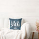 Das hübsche, rustikale Weihnachtsthrowkissen, das gedruckt wurde, um wie Leinwand auszusehen, Schneeflocken in tiefem Blauem kennzeichnend und "ließ es im weißen Hand-mit Buchstaben gekennzeichneten Schriftart schneien".